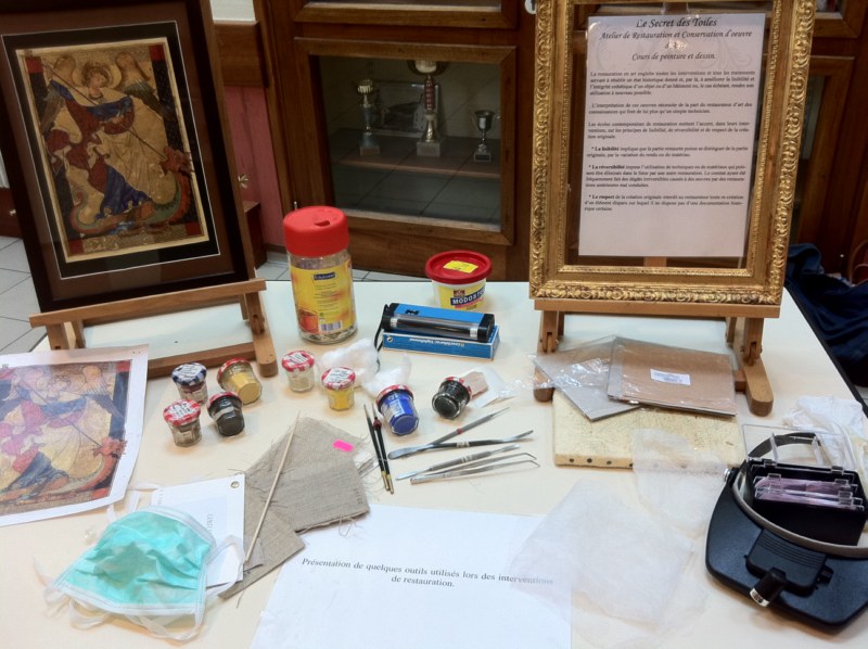 Sur une autre, j’avais exposer la plus part des outils et matériels que j’utilise lors de mes travaux.